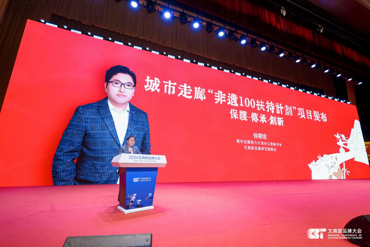 在大会主论坛上,文商旅发展研究院院长徐期宏隆重发布了备受瞩目的城市走廊“非遗100扶持计划”。