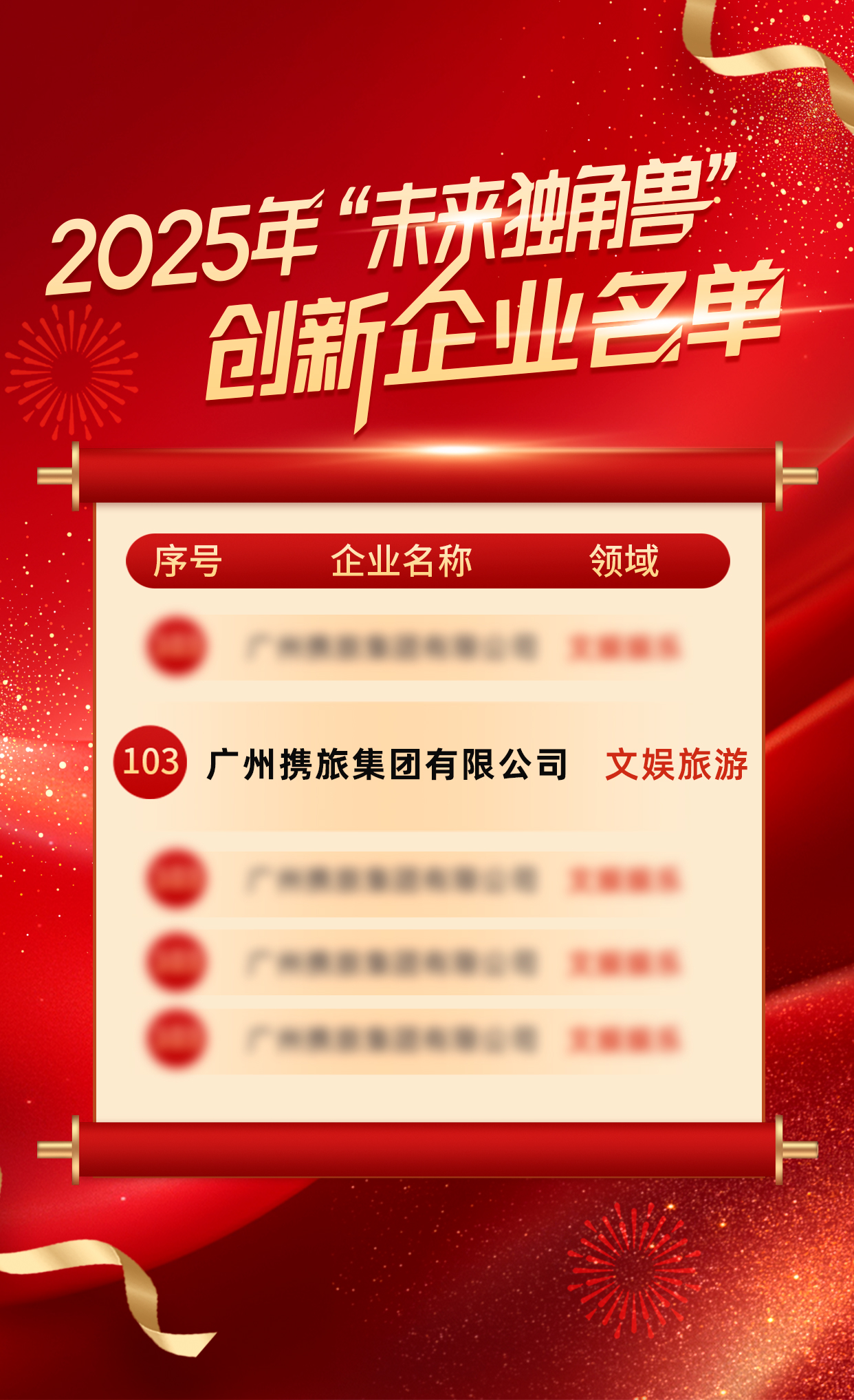 广州携旅集团入选2025年“未来独角兽”创新企业榜单
